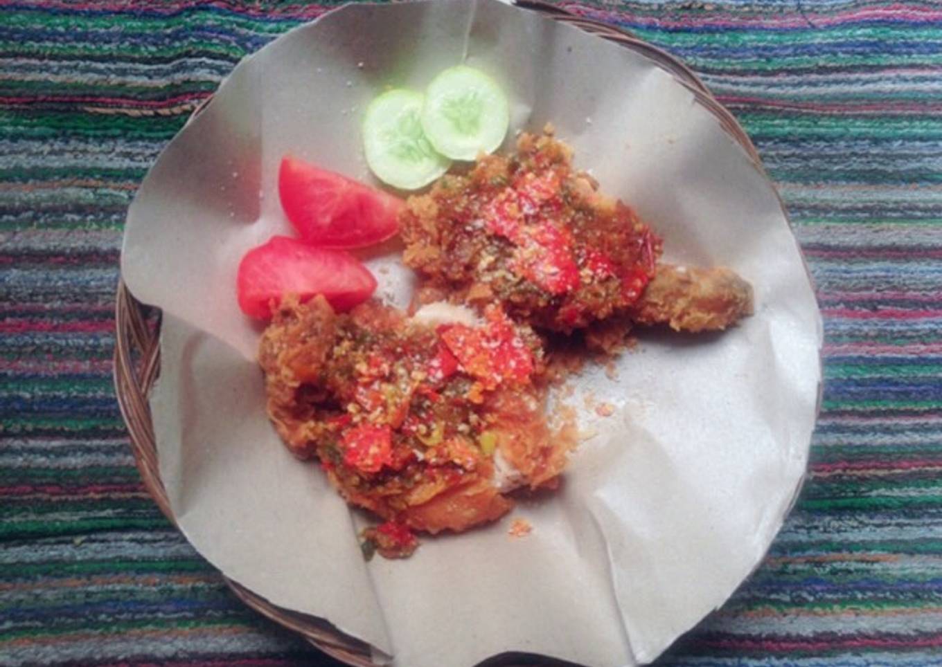 Resep ayam KFC aku minta ke temen yg emg kerja di KFC jd deh ayam geprek bensu KW an nya hahaha