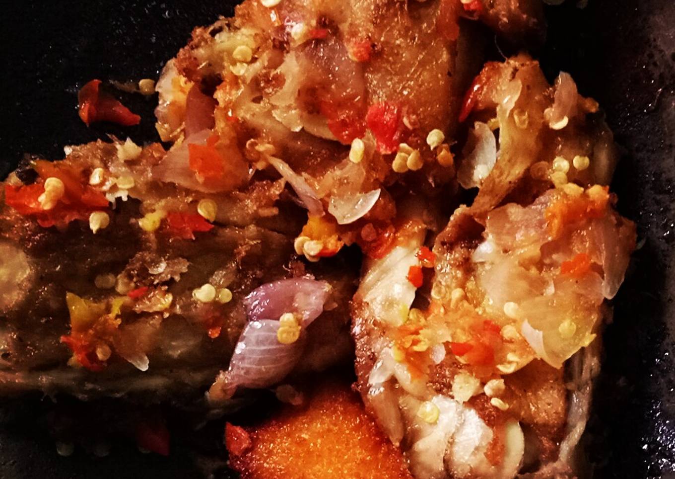- Kemudian penyet ayam ke sambal dan baluri ayam dengan sambal