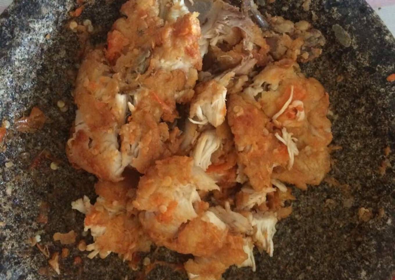 - Geprek ayam di uleg campur dengan sambalnya!