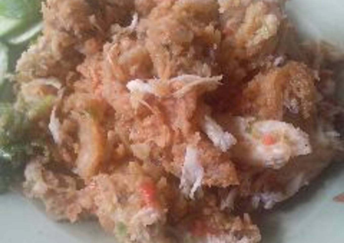 - Jika sambal sudah pas rasanya, geprek ayam tepung di atas sambal yang sudah dihaluskan. Aduk rata, sajikan