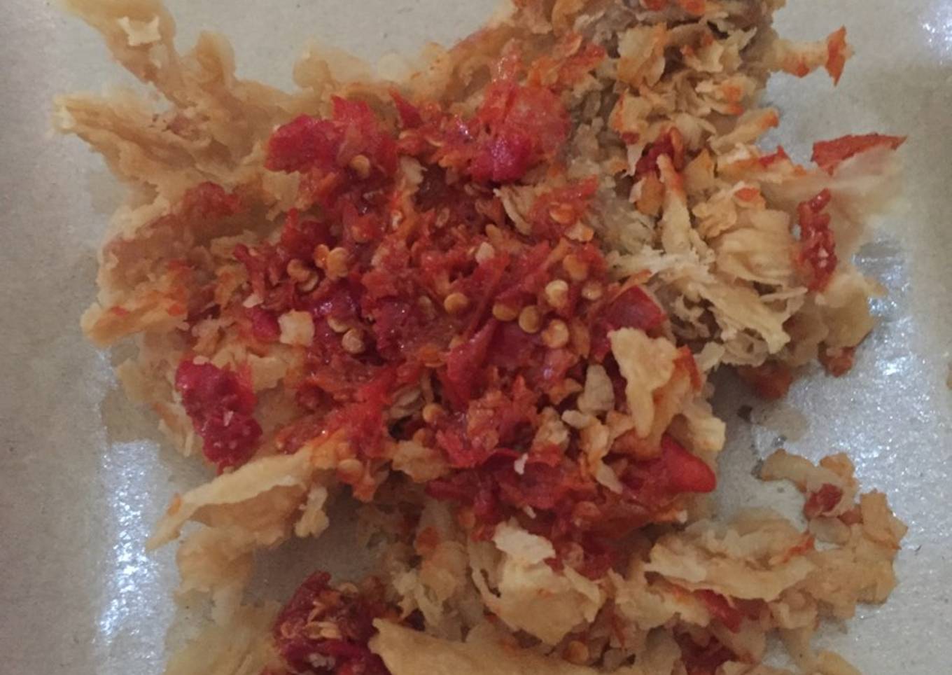 - Siram sambal dengan minyak goreng yang panas, lalu aduk rata.