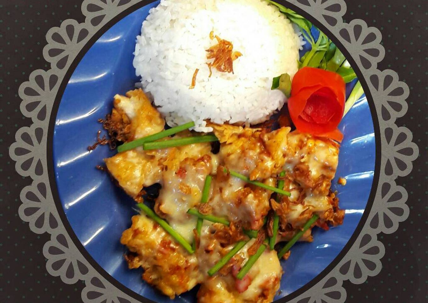 - Cekup ayam kedalam tepung basah lalu balur dengan tepung kering. Goreng menggunakan api kecil hingga kuning keemasan.