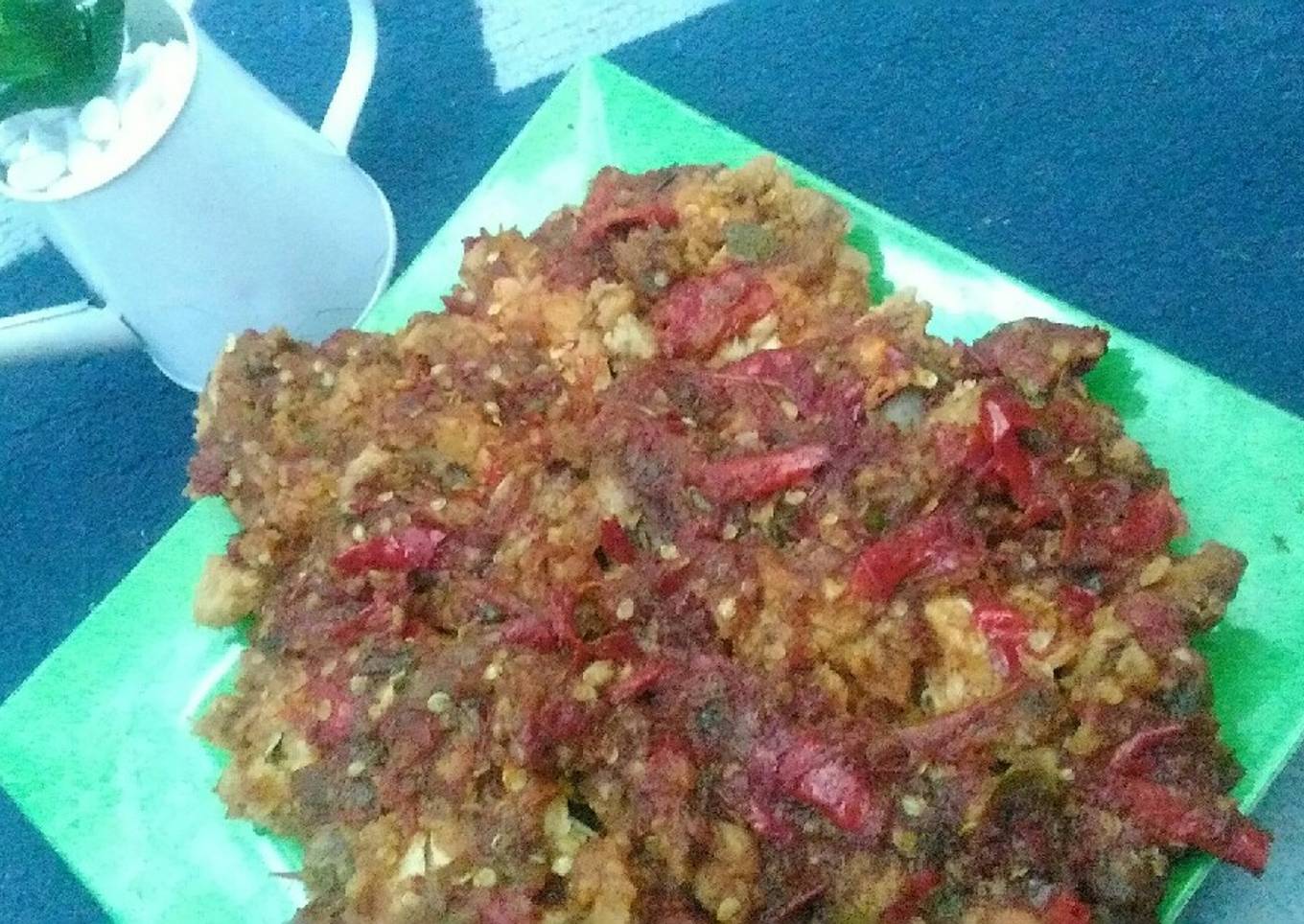 - Goreng terasi dengan 1 sdm minyak,. setelah wangi masukkan bahan sambal.aduk2,tambahkan garam dan gula merah..test rasa.Angkat..