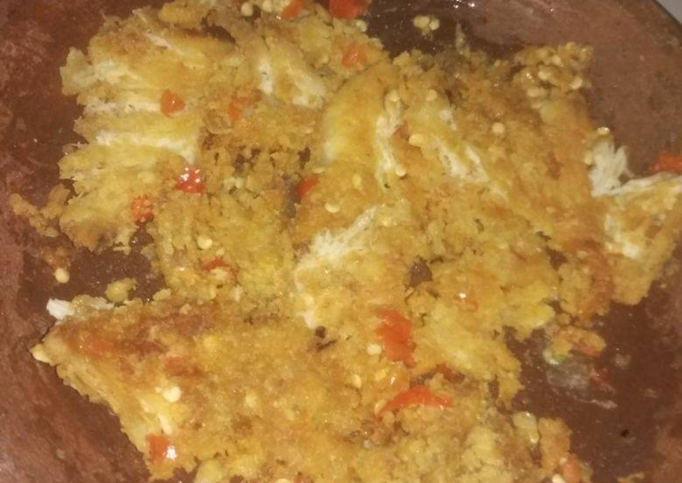 - Laburi dengan tepung bumbu, tepung jangan terlalu basah. Goreng sampai matang dan warna keemasan