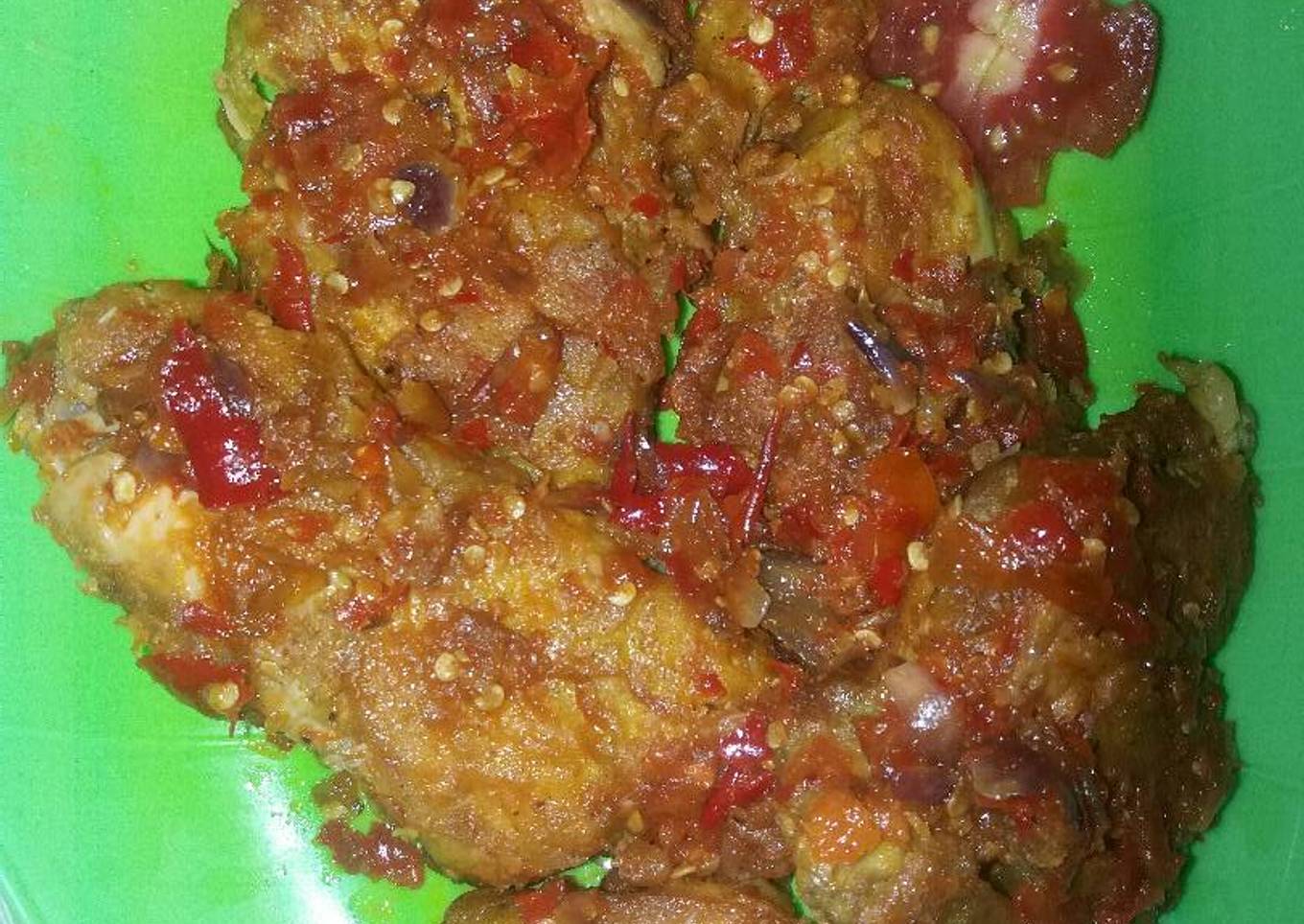- Geprek ayam yang sudah digoreng kedalam sambalnya.