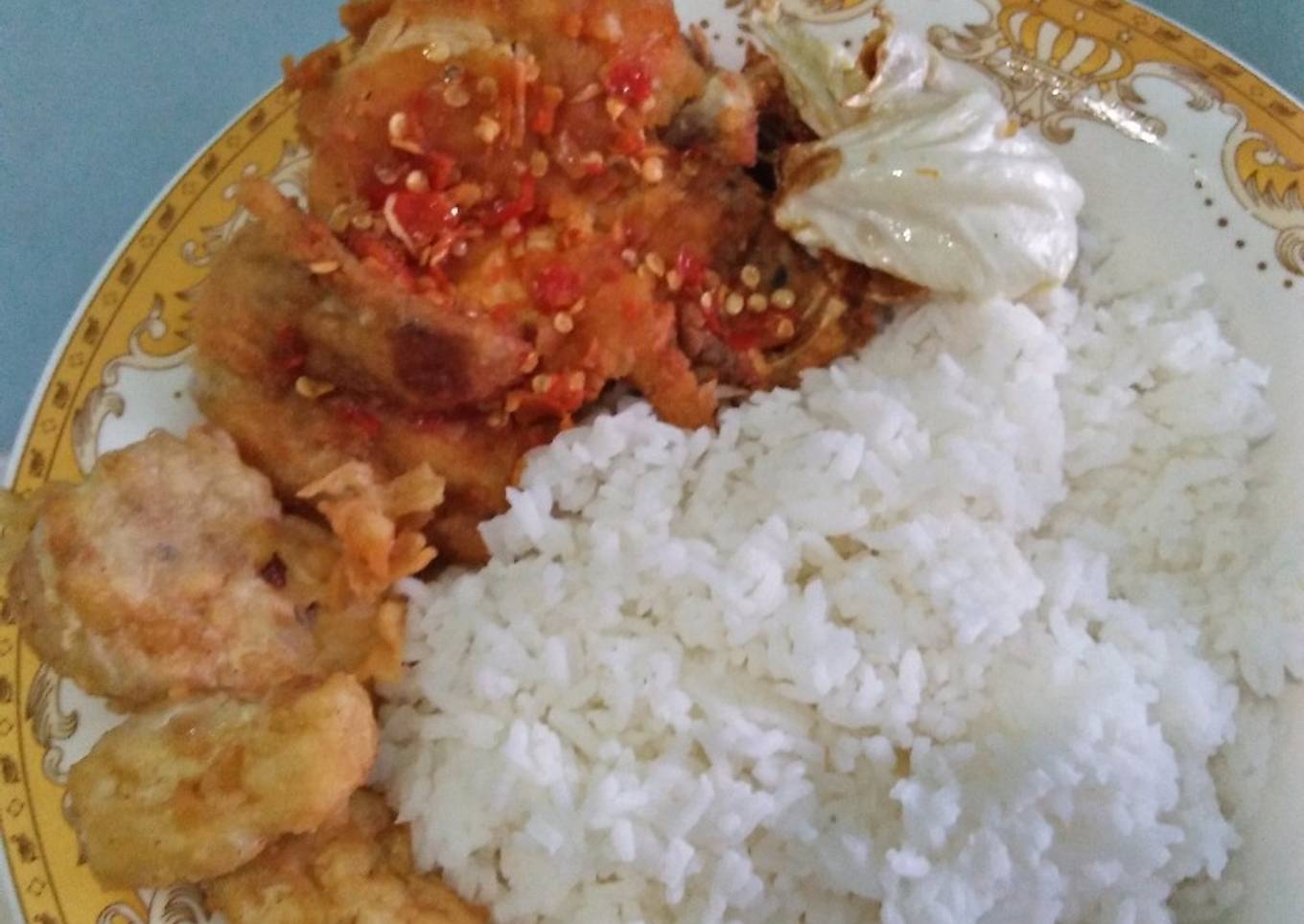 Ada beberapa hal yang sedikit banyak berpengaruh terhadap kualitas rasa dari Ayam geprek praktis, pertama dari jenis bahan, selanjutnya pemilihan bahan segar, sampai cara membuat dan menyajikannya. Tak perlu pusing jika mau menyiapkan Ayam geprek praktis enak di mana pun anda berada, karena asal sudah tahu triknya maka hidangan ini bisa jadi suguhan istimewa. Seterusnya merupakan gambar mengenai Ayam geprek praktis yang bisa sobat jadikan contoh.