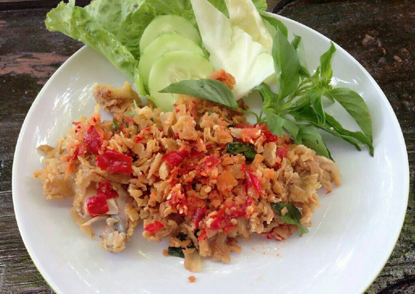 - Lalu masukkan ayam dan geprek, sajikan