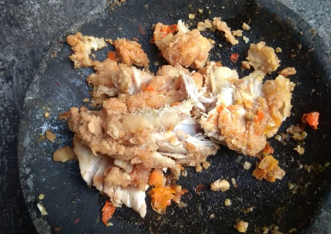 - Geprek ayam di atas sambal.