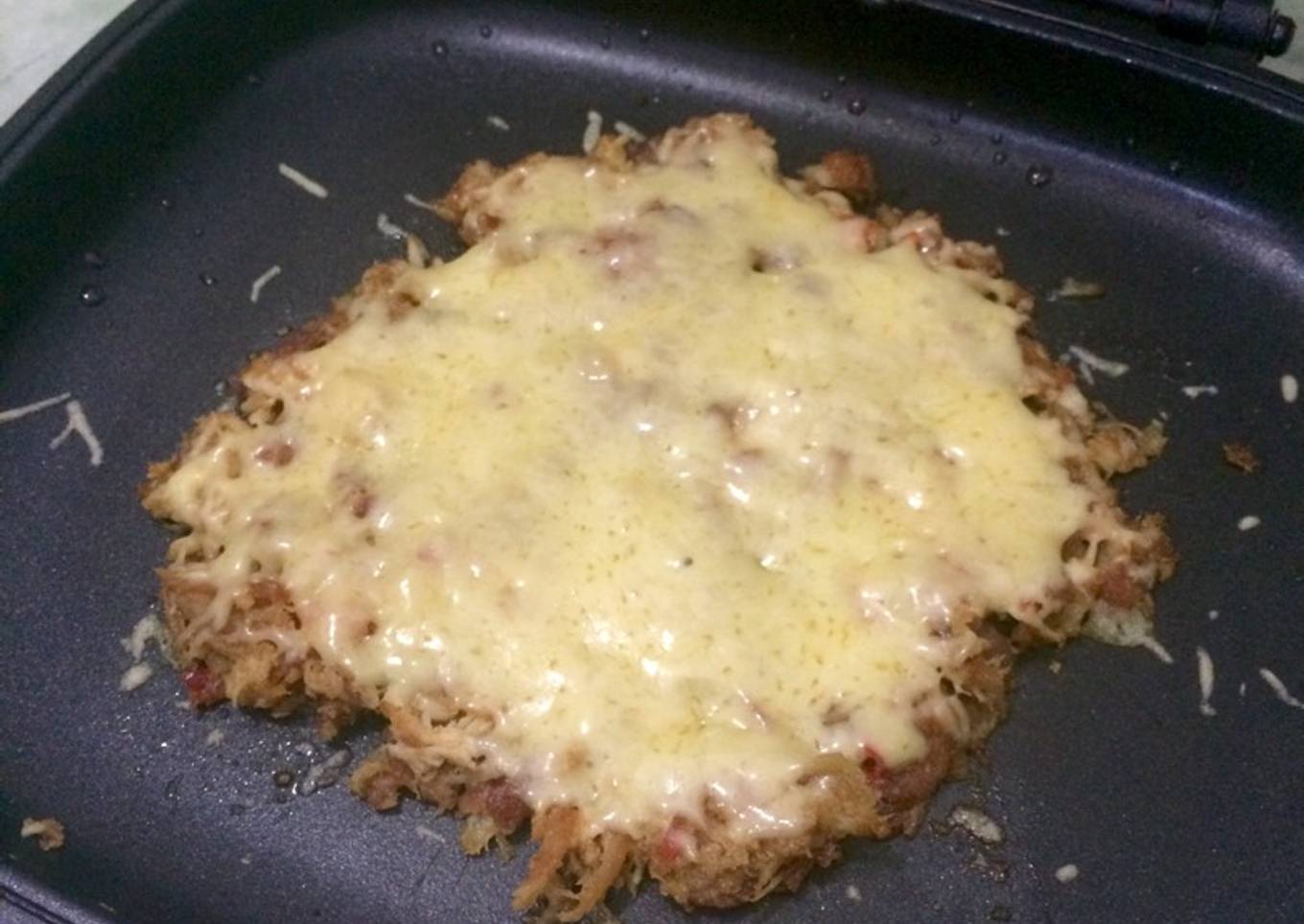 - Setelah tercampur rata, masukan ayam ke dalam teflon lalu berikan mozarella diatas ayam