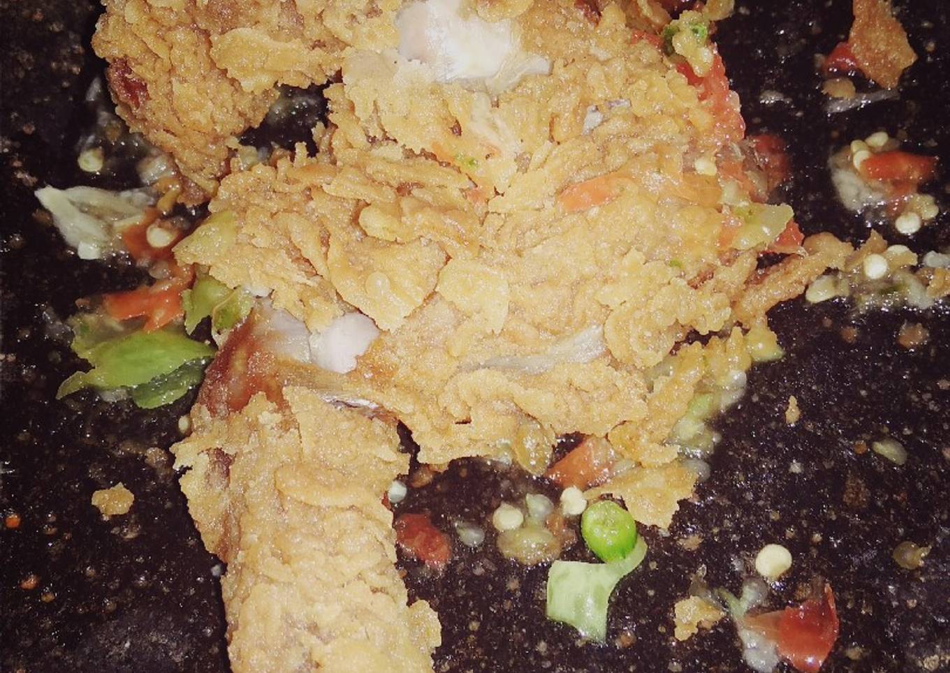 masukkan ayam geprek. - Tes rasa sajikan dengan nasi anget..