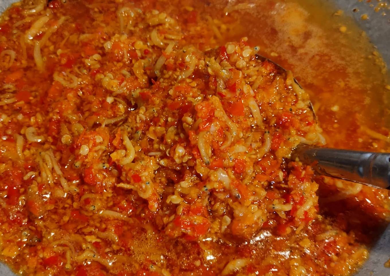 - Masukan cabe dan teri, garam dan penyedap, tes rasa, sesuai kan dgn selera masing-masing ya.