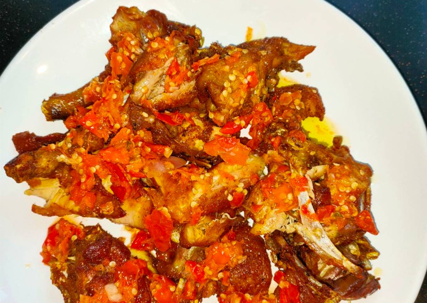 - Setelah matang angkat tiriskan lalu goreng, angkat lalu digeprek susun dlm piring.