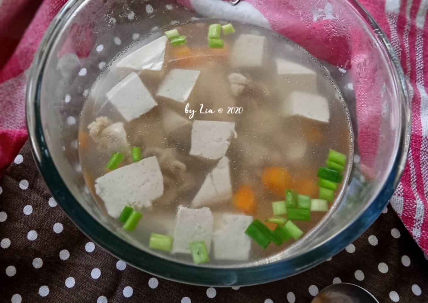 - Masukkan ayam dan tahu, beri gula, garam dan merica bubuk. Koreksi rasa. Pastikan wortel empuk ya.