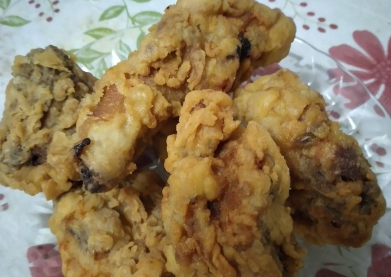 - Lalu masukkan ayam ke adonan basah kemudian adonan kering lalu air es terakhir adonan kering lagi sambil dicubit cubit ayamnya ya😊