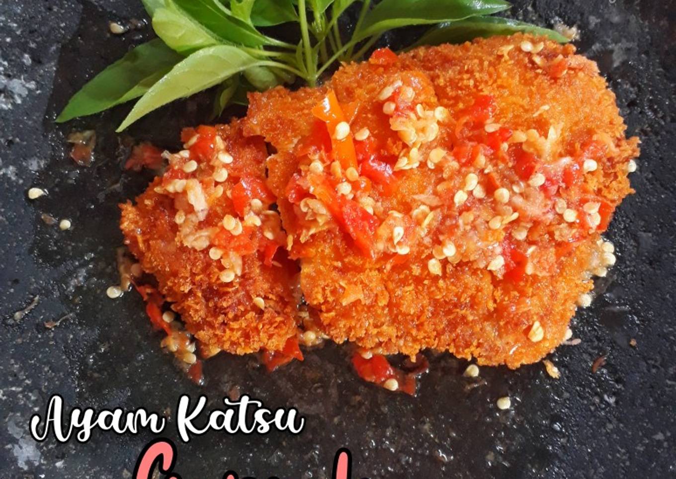 - Geprek ayam katsu di atas sambal dan hidangkan dengan lalapan.