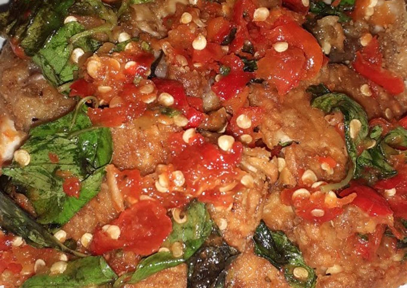 - Setelah ayam dan tempe digoreng, angkat lalu geprek setelah di geprek baluri dengan sambal tadi.