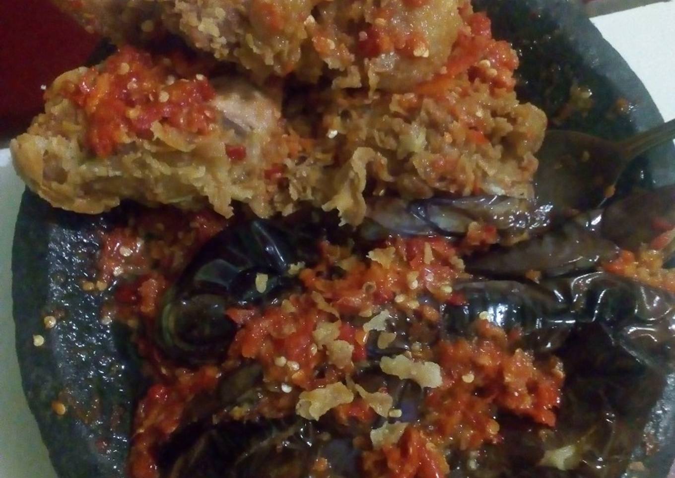 - Masukan n geprek ayam kentucky+terong yg sudah di goreng.