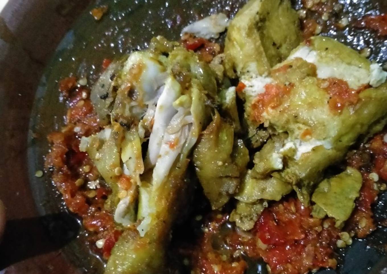 - Dinginkan ayam yang sudah diungkep lalu goreng ayam hingga kecoklatan. Tiriskan ayam. *Tips jangan langsung matikan kompor karna untuk membuat sambel geprek diperlukan minyak panas, cukup kecilkan api nya saja.